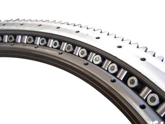 單排交叉滾柱式回轉支承,由兩個座圈組成,結構緊湊、重量輕、制造精度高,裝配間隙小,對安裝精度要求高,滾柱為1:1交叉排列,能同時承受軸向力,傾翻力矩和較大的徑向力,被廣泛地用于起重運輸、工程機械和軍工產(chǎn)品上。