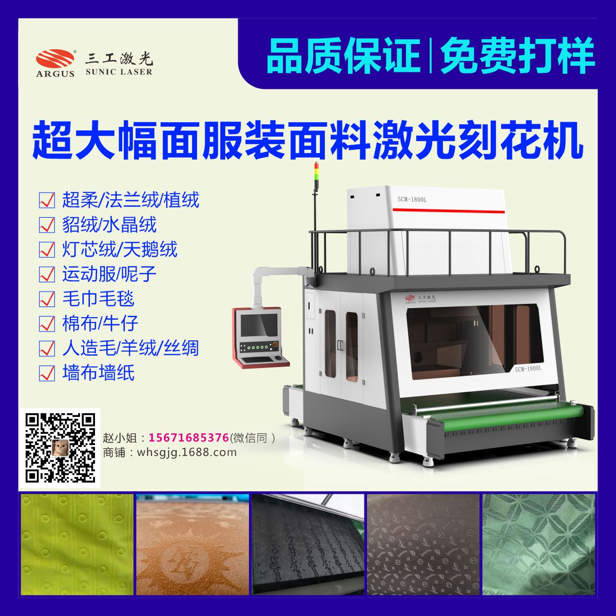 該設(shè)備是利用激光的熱效應(yīng),無接觸的對面料進(jìn)行燒灼刻蝕,并形成凸凹有致的花型圖案。